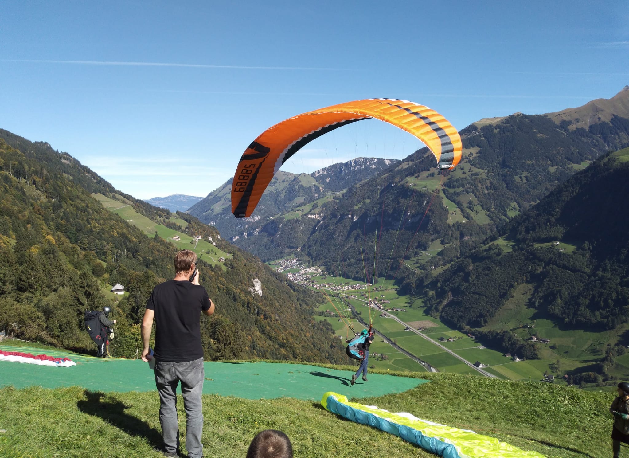 An den ersten zwei Tagen lernst du an unserem Übungshang das starten und landen und absolvierst bereis die ersten Flüge in sicherer Höhe. Am dritten Tag geht es dann los, wir starten von einem richtigen Startplatz in der Region und du kannst die Welt von oben geniessen. Du wirst am Startplatz von einem unserer Startleiter betreut, in der Luft bist du per Funk mit dem Fluglehrer verbunden, der dich sicher zurück auf den boden begleitet.